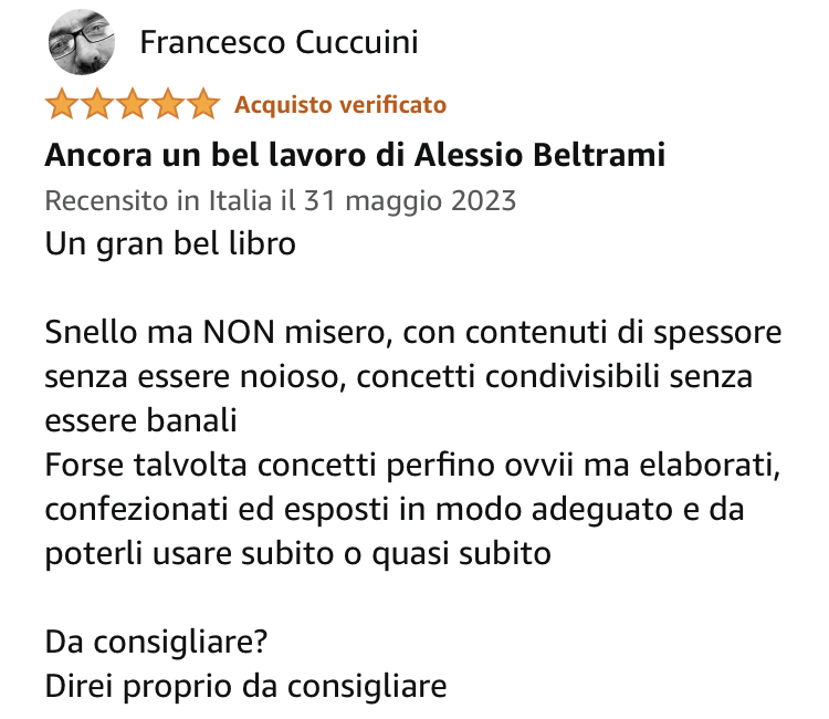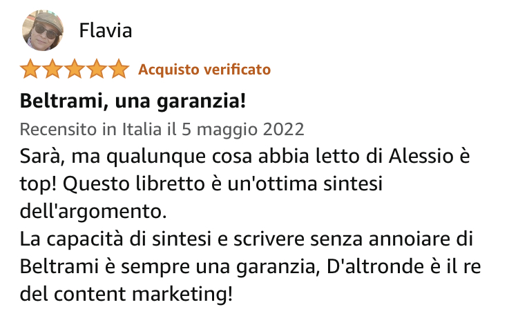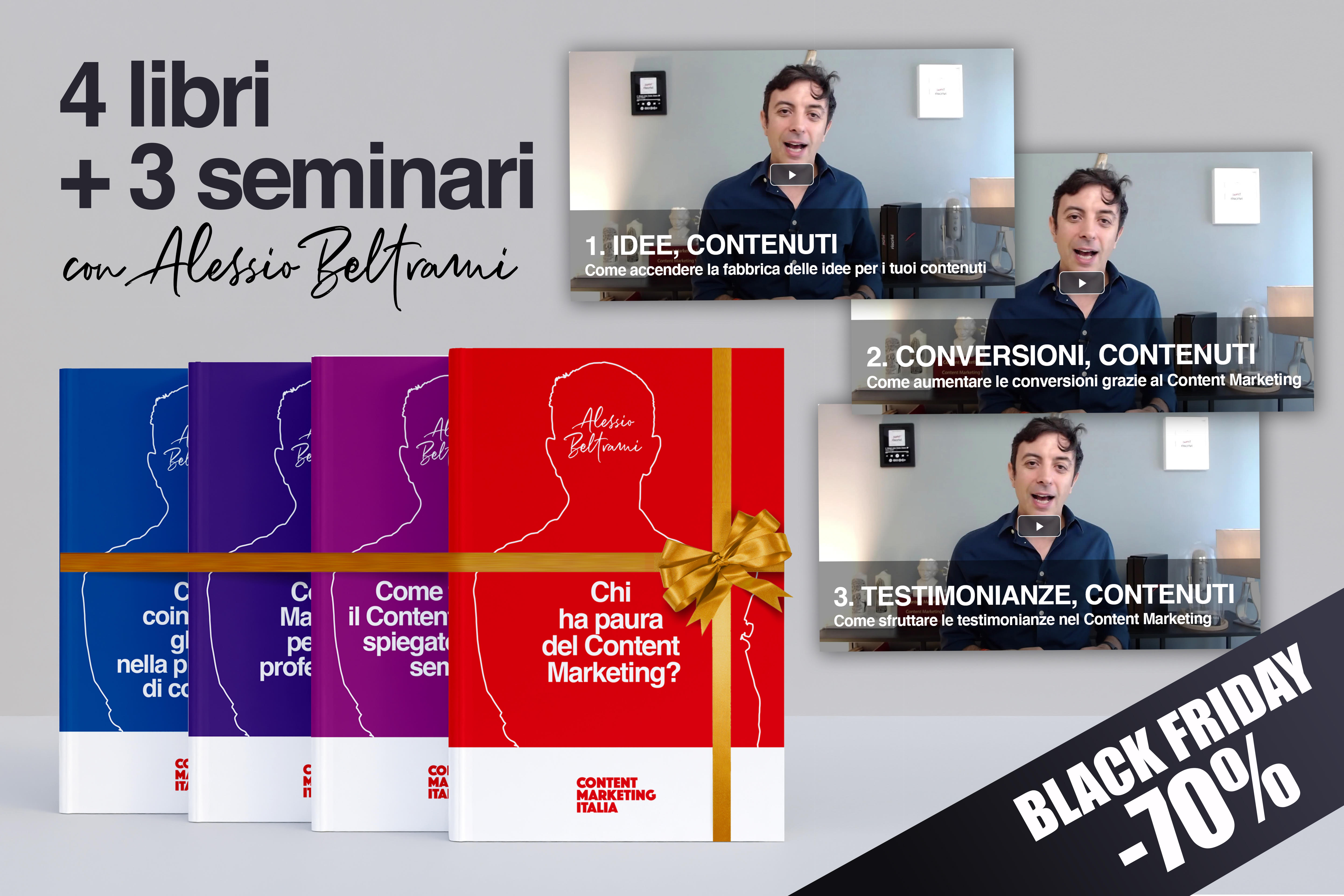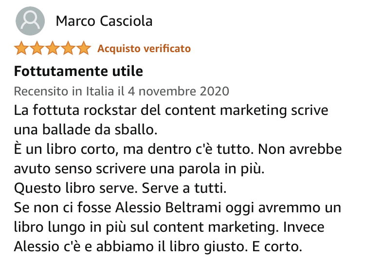 4 libri pratici senza pappardelle democristiane per riempire più pagine. Trovi tutto quello che serve per dare una direzione al tuo marketing grazie ai contenuti. Sono testi da tenere sempre a portata di mano, sulla scrivania o, meglio ancora, sul comodino accanto al letto. I fidanzamenti finiscono, Beltrami sarà sempre lì.