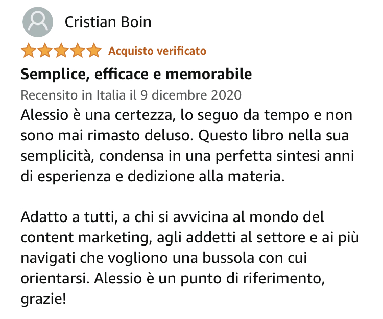 Vedrai come sfruttare le testimonianze per migliorare la tua strategia di contenuti e le tue vendite. Ti permetteranno di stabilire in tempi rapidi un rapporto di fiducia profondo con i clienti.